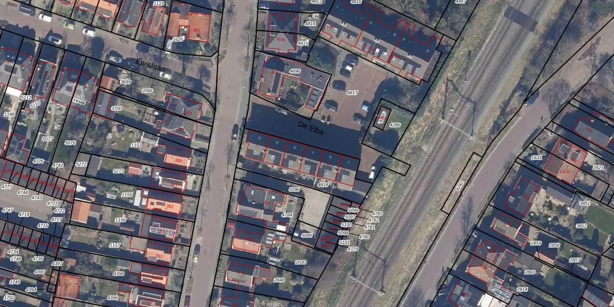 Het perceel waarop De Elba 7 staat heeft een oppervlakte van 557 m². Dit is een groot perceel. De perceeloppervlakte wordt geregistreerd door het Kadaster. Gedetailleerde informatie over de maten van dit perceel kunt u vinden in het rapport Kadastrale kaart met maatvoering van De Elba 7.