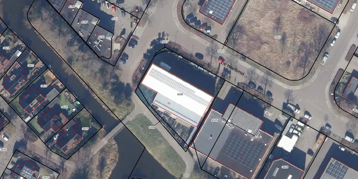 De Hoefsmid 25 is gelegen op kadastraal perceel HLO00D5006. Deze kadastrale aanduiding is uniek en wordt gebruikt door het Kadaster om eigendomsrechten en andere zakelijke rechten vast te leggen. Het perceel maakt onderdeel uit van de kadastrale gemeente Heiloo.