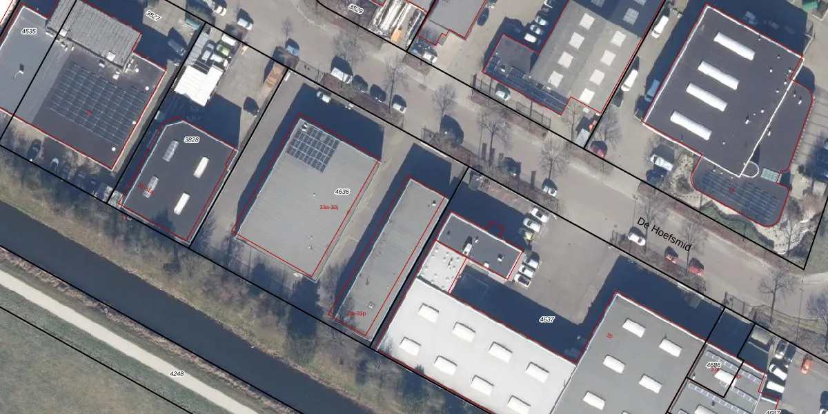 De Hoefsmid 33-k is gelegen op kadastraal perceel HLO00D4636. Deze kadastrale aanduiding is uniek en wordt gebruikt door het Kadaster om eigendomsrechten en andere zakelijke rechten vast te leggen. Het perceel maakt onderdeel uit van de kadastrale gemeente Heiloo.