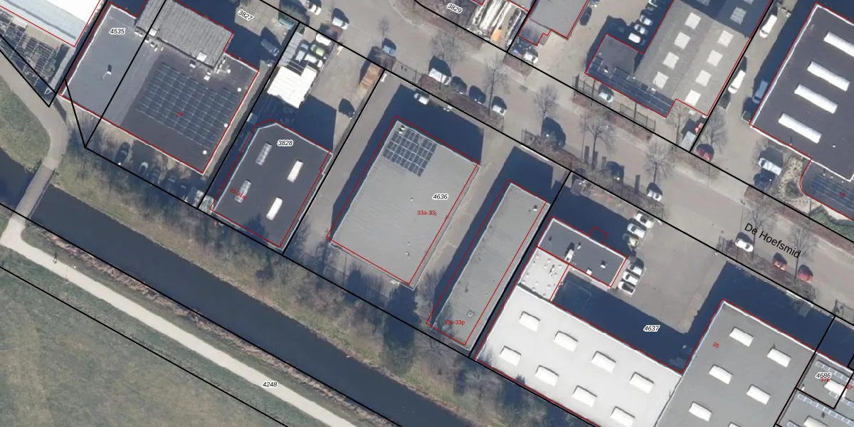 De Hoefsmid 33-j is gelegen op kadastraal perceel HLO00D4636. Deze kadastrale aanduiding is uniek en wordt gebruikt door het Kadaster om eigendomsrechten en andere zakelijke rechten vast te leggen. Het perceel maakt onderdeel uit van de kadastrale gemeente Heiloo.
