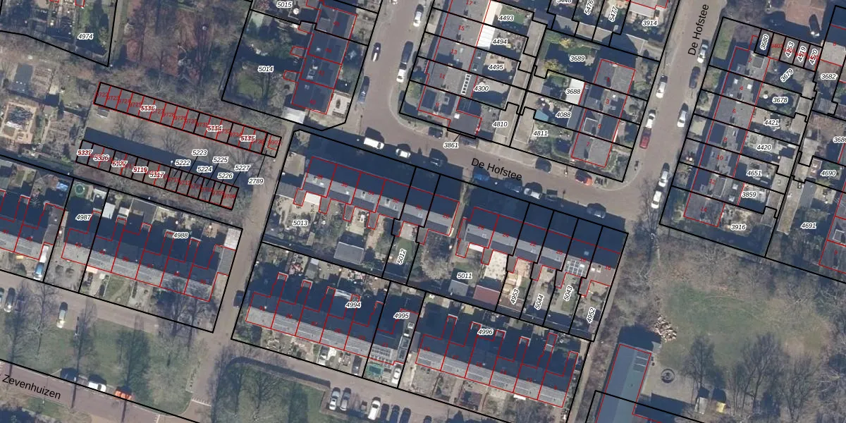 Het perceel waarop De Hofstee 30 staat heeft een oppervlakte van 165 m². Dit is een middelgroot perceel. De perceeloppervlakte wordt geregistreerd door het Kadaster. Gedetailleerde informatie over de maten van dit perceel kunt u vinden in het rapport Kadastrale kaart met maatvoering van De Hofstee 30.