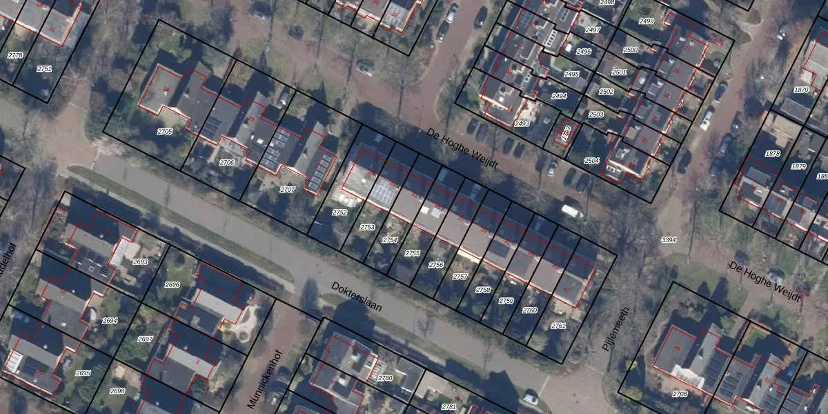 Het perceel waarop De Hoghe Weijdt 33 staat heeft een oppervlakte van 187 m². Dit is een middelgroot perceel. De perceeloppervlakte wordt geregistreerd door het Kadaster. Gedetailleerde informatie over de maten van dit perceel kunt u vinden in het rapport Kadastrale kaart met maatvoering van De Hoghe Weijdt 33.