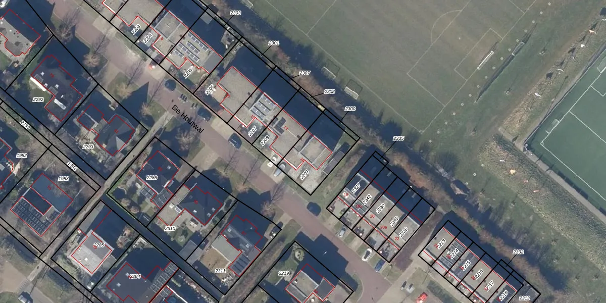 De Houtwal 16 is gelegen op kadastraal perceel HLO00F2209. Deze kadastrale aanduiding is uniek en wordt gebruikt door het Kadaster om eigendomsrechten en andere zakelijke rechten vast te leggen. Het perceel maakt onderdeel uit van de kadastrale gemeente Heiloo.
