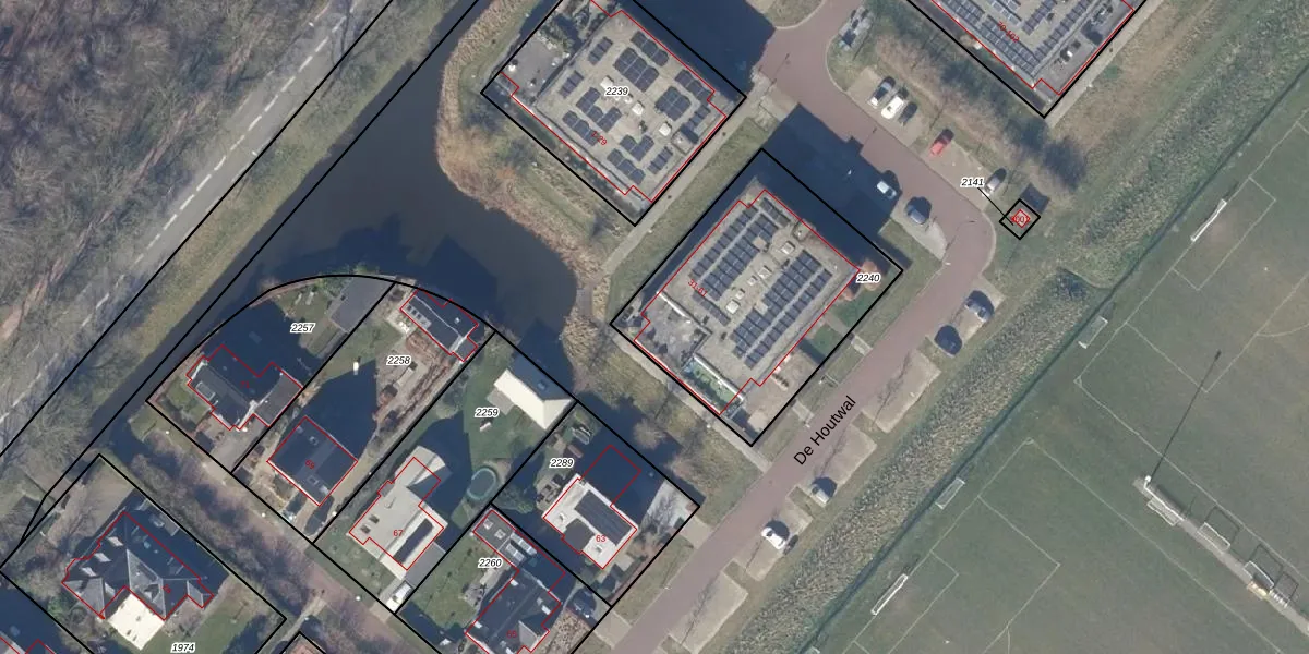 Het perceel waarop De Houtwal 61 staat heeft een oppervlakte van 1011 m². Dit is een zeer groot perceel. De perceeloppervlakte wordt geregistreerd door het Kadaster. Gedetailleerde informatie over de maten van dit perceel kunt u vinden in het rapport Kadastrale kaart met maatvoering van De Houtwal 61.