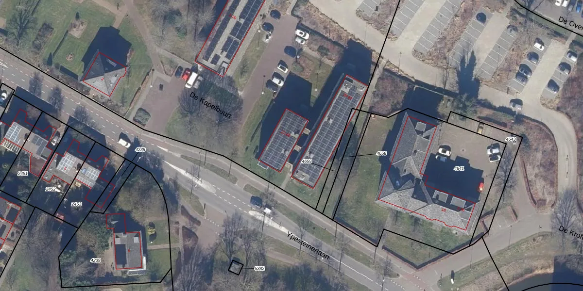 Het perceel waarop De Kapelbuurt 24 staat heeft een oppervlakte van 11,0 ha. Dit is een zeer groot perceel. De perceeloppervlakte wordt geregistreerd door het Kadaster. Gedetailleerde informatie over de maten van dit perceel kunt u vinden in het rapport Kadastrale kaart met maatvoering van De Kapelbuurt 24.