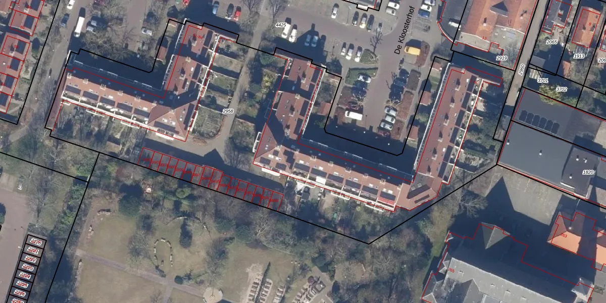 Het perceel waarop De Kloosterhof 12 staat heeft een oppervlakte van 6080 m². Dit is een zeer groot perceel. De perceeloppervlakte wordt geregistreerd door het Kadaster. Gedetailleerde informatie over de maten van dit perceel kunt u vinden in het rapport Kadastrale kaart met maatvoering van De Kloosterhof 12.