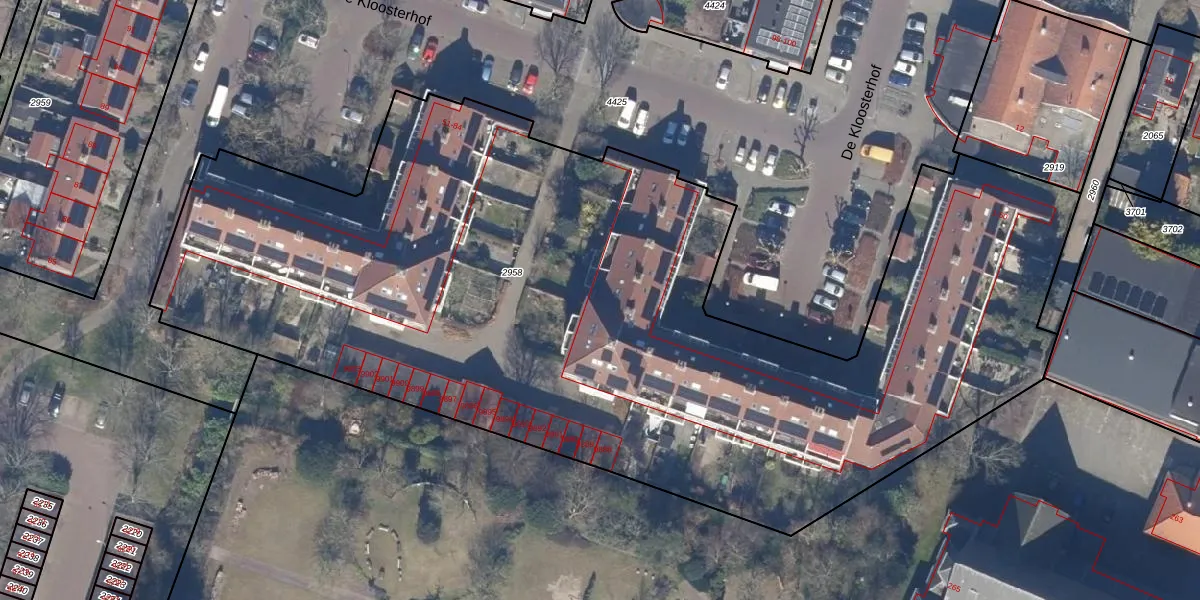 Het perceel waarop De Kloosterhof 46 staat heeft een oppervlakte van 6080 m². Dit is een zeer groot perceel. De perceeloppervlakte wordt geregistreerd door het Kadaster. Gedetailleerde informatie over de maten van dit perceel kunt u vinden in het rapport Kadastrale kaart met maatvoering van De Kloosterhof 46.
