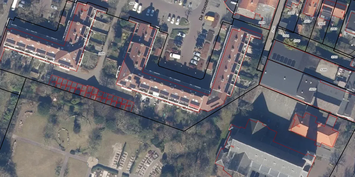 Het perceel waarop De Kloosterhof 9 staat heeft een oppervlakte van 6080 m². Dit is een zeer groot perceel. De perceeloppervlakte wordt geregistreerd door het Kadaster. Gedetailleerde informatie over de maten van dit perceel kunt u vinden in het rapport Kadastrale kaart met maatvoering van De Kloosterhof 9.