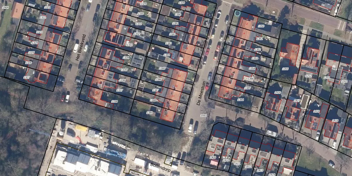 Het perceel waarop De Moestuin 15 staat heeft een oppervlakte van 173 m². Dit is een middelgroot perceel. De perceeloppervlakte wordt geregistreerd door het Kadaster. Gedetailleerde informatie over de maten van dit perceel kunt u vinden in het rapport Kadastrale kaart met maatvoering van De Moestuin 15.