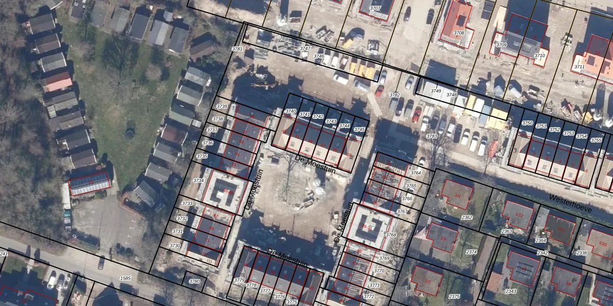 Het perceel waarop De Moestuin 39 staat heeft een oppervlakte van 82 m². Dit is een klein perceel. De perceeloppervlakte wordt geregistreerd door het Kadaster. Gedetailleerde informatie over de maten van dit perceel kunt u vinden in het rapport Kadastrale kaart met maatvoering van De Moestuin 39.