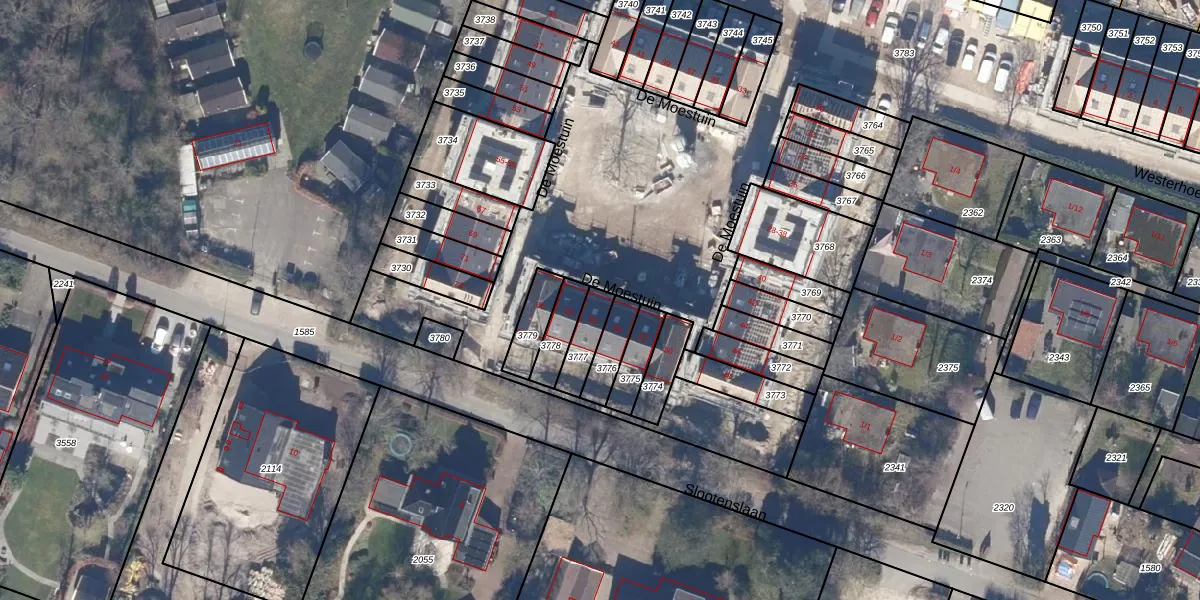 Het perceel waarop De Moestuin 56 staat heeft een oppervlakte van 82 m². Dit is een klein perceel. De perceeloppervlakte wordt geregistreerd door het Kadaster. Gedetailleerde informatie over de maten van dit perceel kunt u vinden in het rapport Kadastrale kaart met maatvoering van De Moestuin 56.