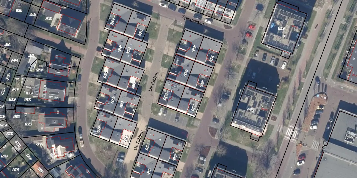 Het perceel waarop De Ribben 5 staat heeft een oppervlakte van 165 m². Dit is een middelgroot perceel. De perceeloppervlakte wordt geregistreerd door het Kadaster. Gedetailleerde informatie over de maten van dit perceel kunt u vinden in het rapport Kadastrale kaart met maatvoering van De Ribben 5.