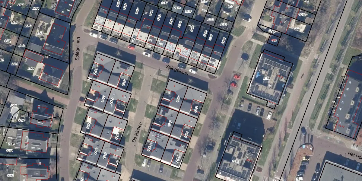 Het perceel waarop De Ribben 9 staat heeft een oppervlakte van 165 m². Dit is een middelgroot perceel. De perceeloppervlakte wordt geregistreerd door het Kadaster. Gedetailleerde informatie over de maten van dit perceel kunt u vinden in het rapport Kadastrale kaart met maatvoering van De Ribben 9.