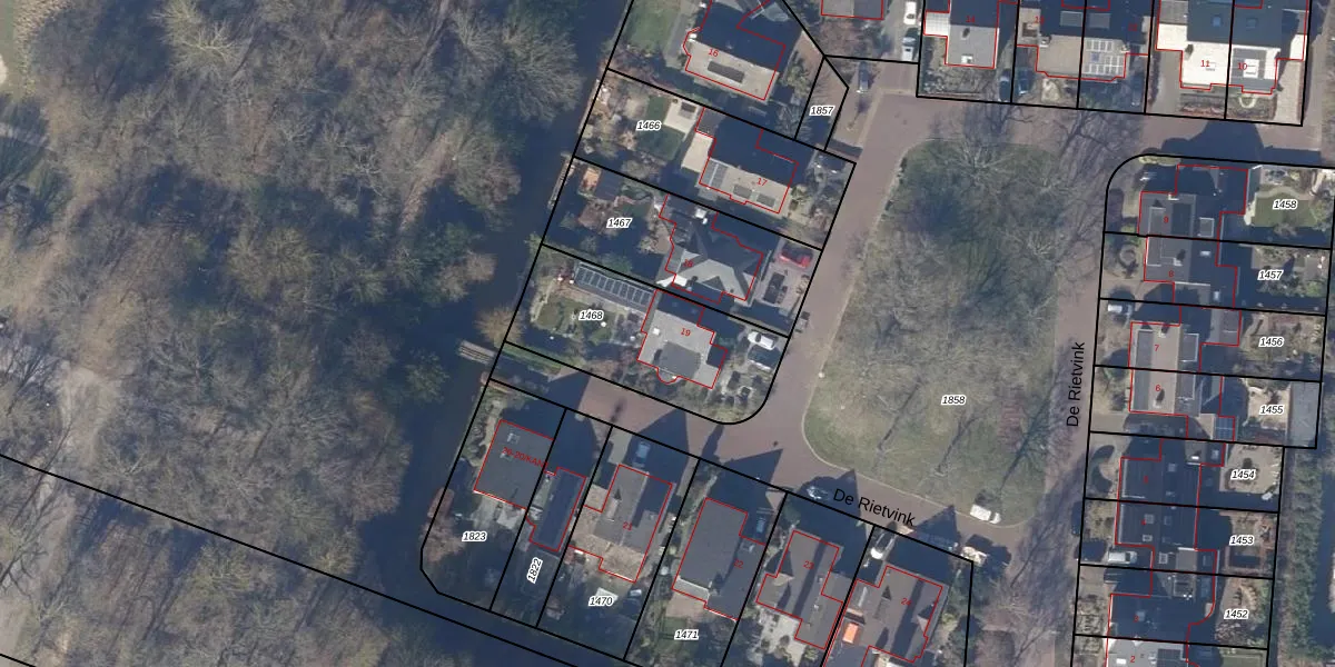 Het perceel waarop De Rietvink 19 staat heeft een oppervlakte van 620 m². Dit is een groot perceel. De perceeloppervlakte wordt geregistreerd door het Kadaster. Gedetailleerde informatie over de maten van dit perceel kunt u vinden in het rapport Kadastrale kaart met maatvoering van De Rietvink 19.