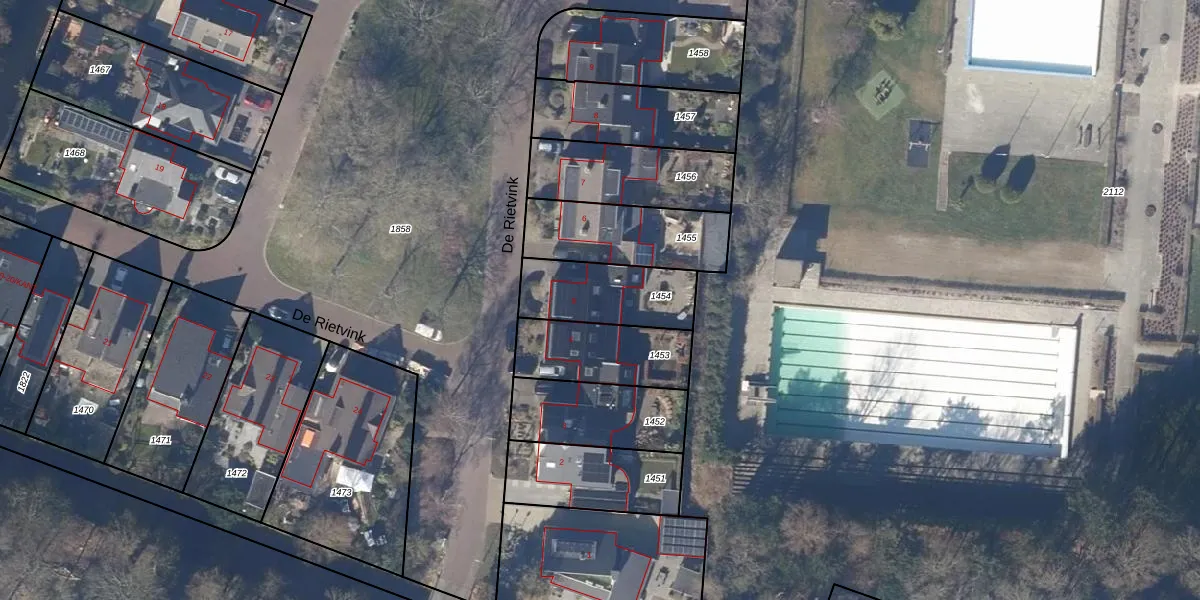 De Rietvink 5 is gelegen op kadastraal perceel HLO00F1454. Deze kadastrale aanduiding is uniek en wordt gebruikt door het Kadaster om eigendomsrechten en andere zakelijke rechten vast te leggen. Het perceel maakt onderdeel uit van de kadastrale gemeente Heiloo.