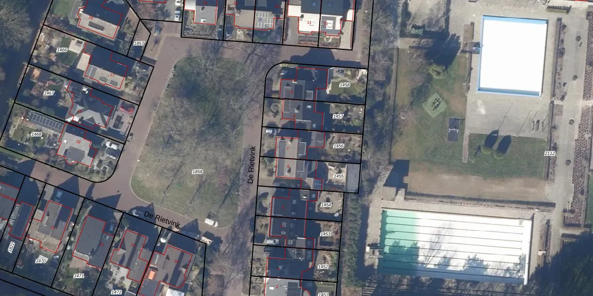 Het perceel waarop De Rietvink 7 staat heeft een oppervlakte van 343 m². Dit is een groot perceel. De perceeloppervlakte wordt geregistreerd door het Kadaster. Gedetailleerde informatie over de maten van dit perceel kunt u vinden in het rapport Kadastrale kaart met maatvoering van De Rietvink 7.