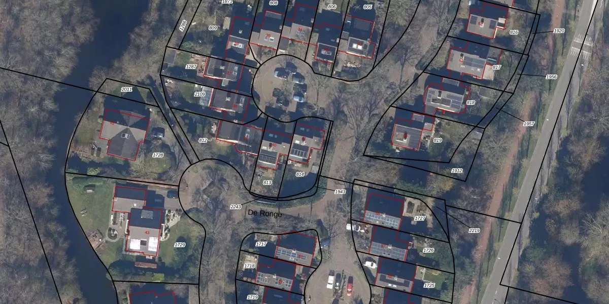 Het perceel waarop De Ronge 41 staat heeft een oppervlakte van 280 m². Dit is een middelgroot perceel. De perceeloppervlakte wordt geregistreerd door het Kadaster. Gedetailleerde informatie over de maten van dit perceel kunt u vinden in het rapport Kadastrale kaart met maatvoering van De Ronge 41.