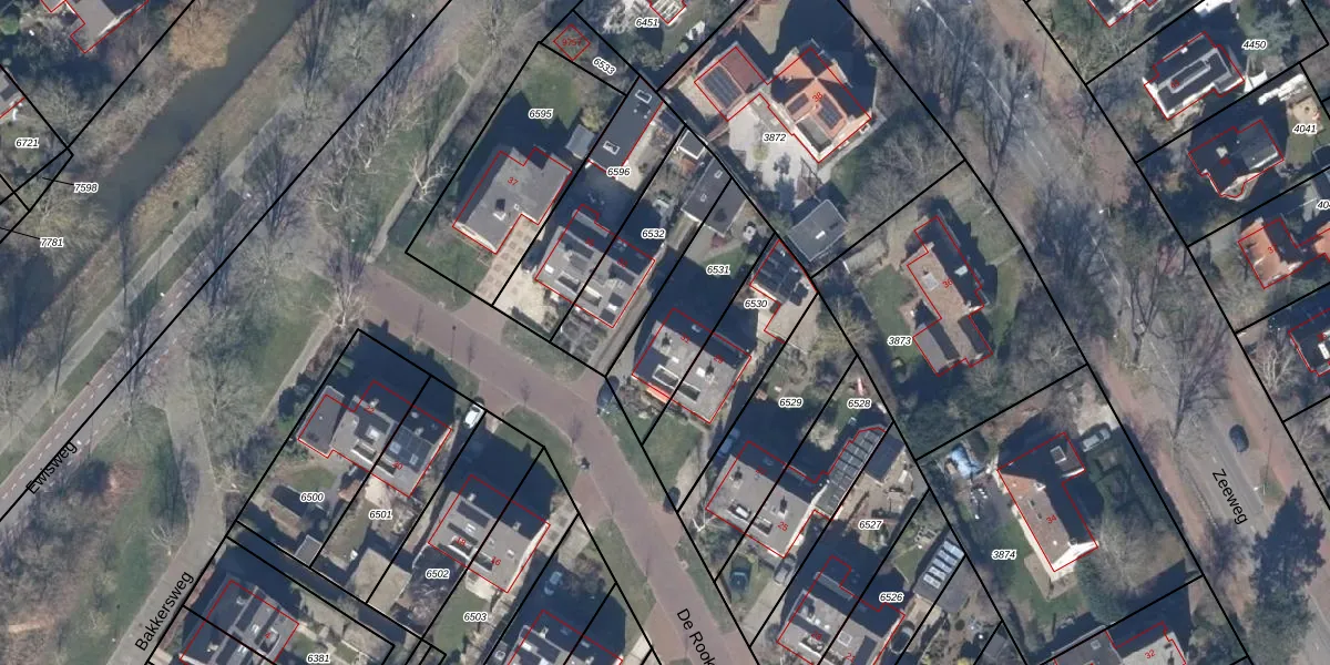 Het perceel waarop De Rookamer 31 staat heeft een oppervlakte van 365 m². Dit is een groot perceel. De perceeloppervlakte wordt geregistreerd door het Kadaster. Gedetailleerde informatie over de maten van dit perceel kunt u vinden in het rapport Kadastrale kaart met maatvoering van De Rookamer 31.