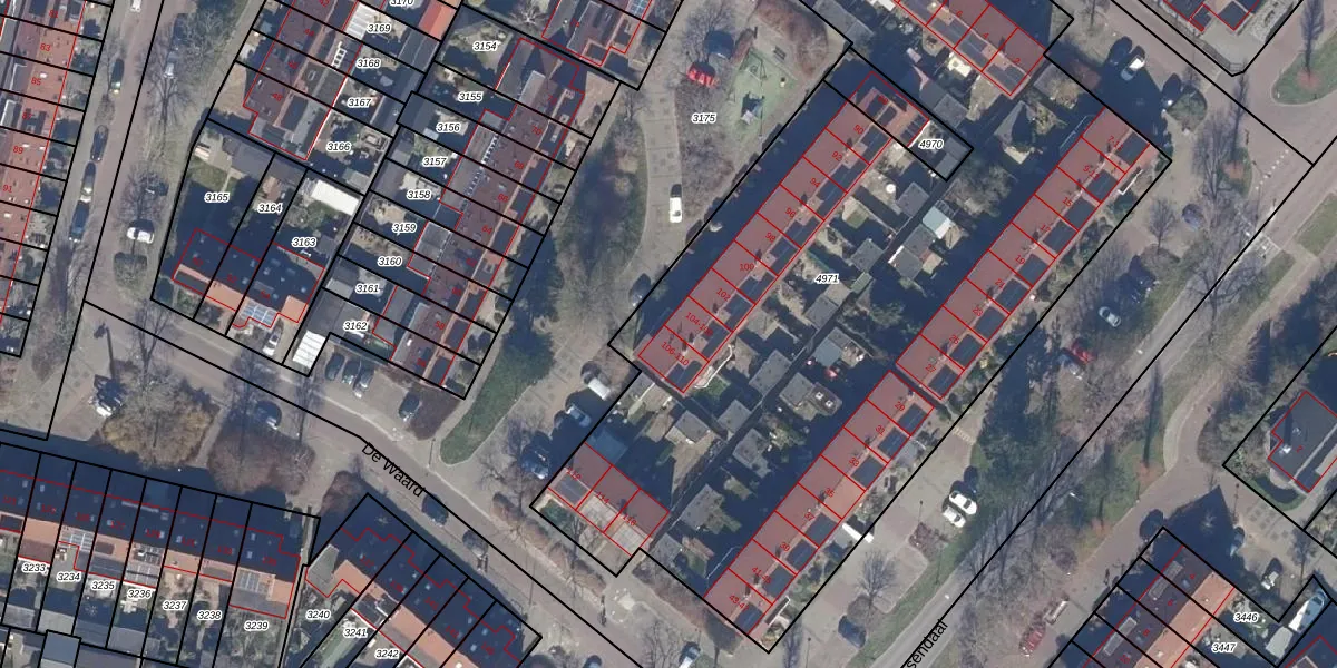 Het perceel waarop De Waard 106 staat heeft een oppervlakte van 4914 m². Dit is een zeer groot perceel. De perceeloppervlakte wordt geregistreerd door het Kadaster. Gedetailleerde informatie over de maten van dit perceel kunt u vinden in het rapport Kadastrale kaart met maatvoering van De Waard 106.