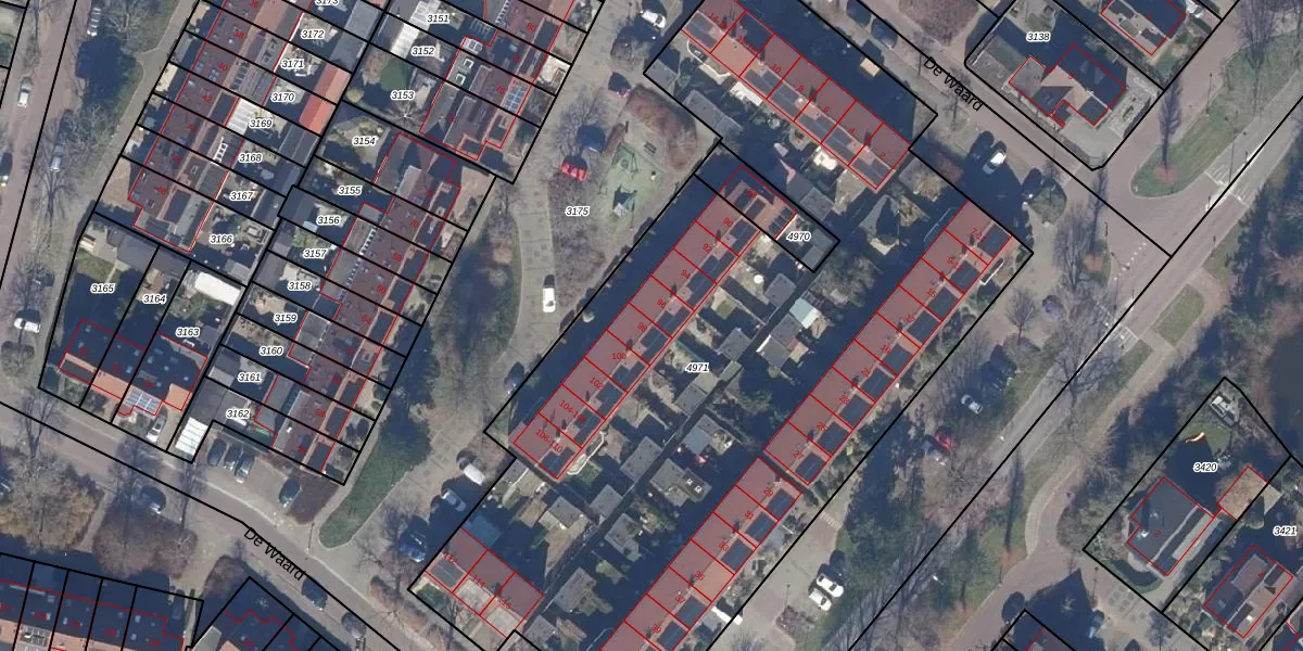 Het perceel waarop De Waard 98 staat heeft een oppervlakte van 4914 m². Dit is een zeer groot perceel. De perceeloppervlakte wordt geregistreerd door het Kadaster. Gedetailleerde informatie over de maten van dit perceel kunt u vinden in het rapport Kadastrale kaart met maatvoering van De Waard 98.