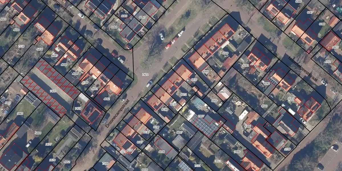 Droonecampstraat 16 is gelegen op kadastraal perceel HLO00A6571. Deze kadastrale aanduiding is uniek en wordt gebruikt door het Kadaster om eigendomsrechten en andere zakelijke rechten vast te leggen. Het perceel maakt onderdeel uit van de kadastrale gemeente Heiloo.