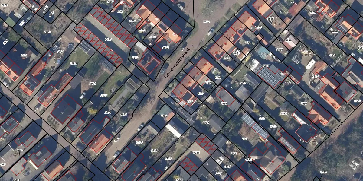 Het perceel waarop Droonecampstraat 28 staat heeft een oppervlakte van 189 m². Dit is een middelgroot perceel. De perceeloppervlakte wordt geregistreerd door het Kadaster. Gedetailleerde informatie over de maten van dit perceel kunt u vinden in het rapport Kadastrale kaart met maatvoering van Droonecampstraat 28.