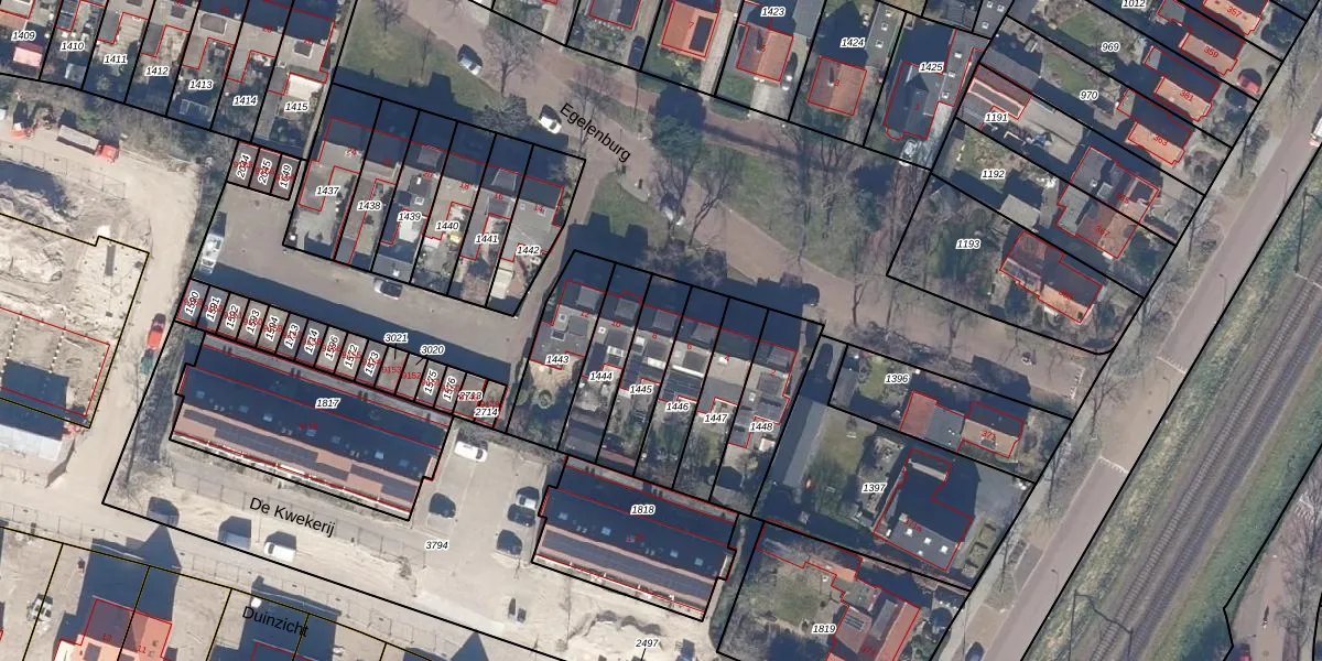 Gebruik de zoekbalk of klik op een perceel voor informatie over de adressen binnen dit perceel.