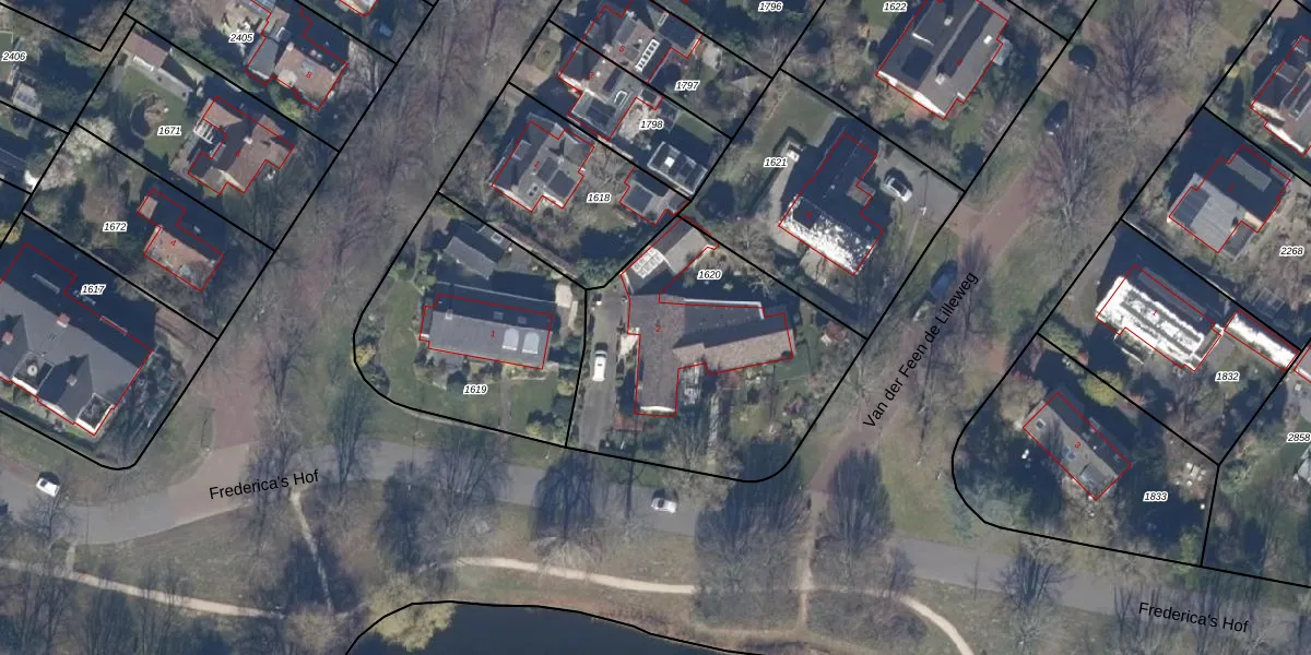 Het perceel waarop Frederica's Hof 2 staat heeft een oppervlakte van 1196 m². Dit is een zeer groot perceel. De perceeloppervlakte wordt geregistreerd door het Kadaster. Gedetailleerde informatie over de maten van dit perceel kunt u vinden in het rapport Kadastrale kaart met maatvoering van Frederica's Hof 2.