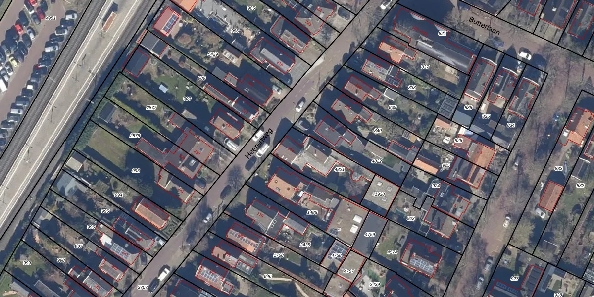 Het perceel waarop Heerenweg 174 staat heeft een oppervlakte van 403 m². Dit is een groot perceel. De perceeloppervlakte wordt geregistreerd door het Kadaster. Gedetailleerde informatie over de maten van dit perceel kunt u vinden in het rapport Kadastrale kaart met maatvoering van Heerenweg 174.