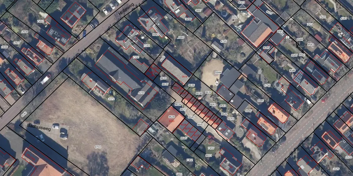 Gebruik de zoekbalk of klik op een perceel voor informatie over de adressen binnen dit perceel.
