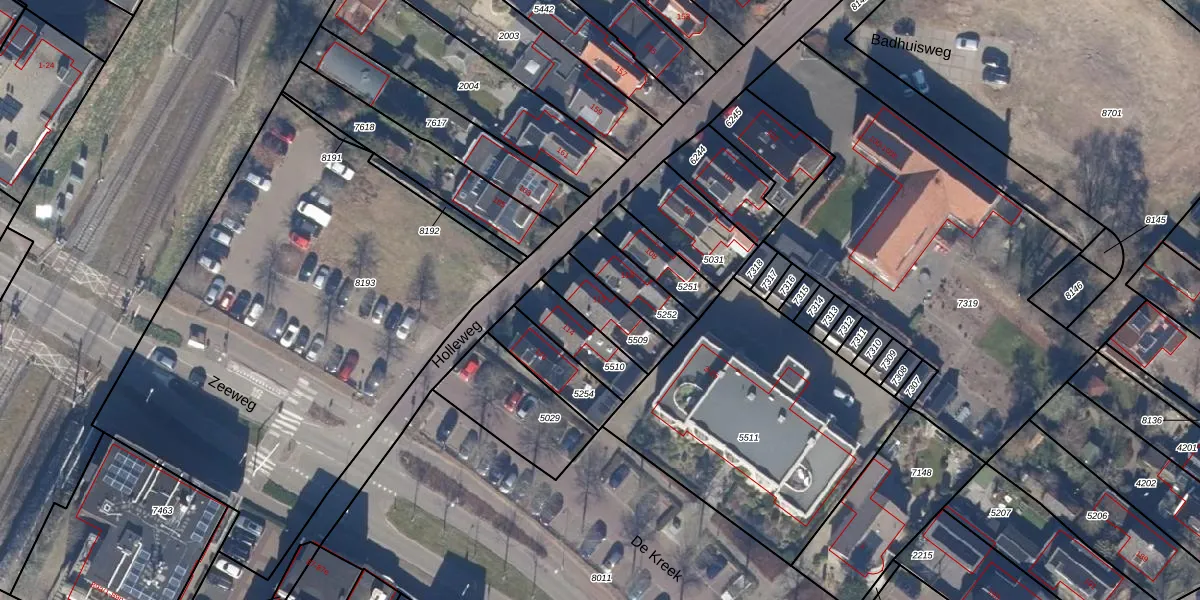 Gebruik de zoekbalk of klik op een perceel voor informatie over de adressen binnen dit perceel.