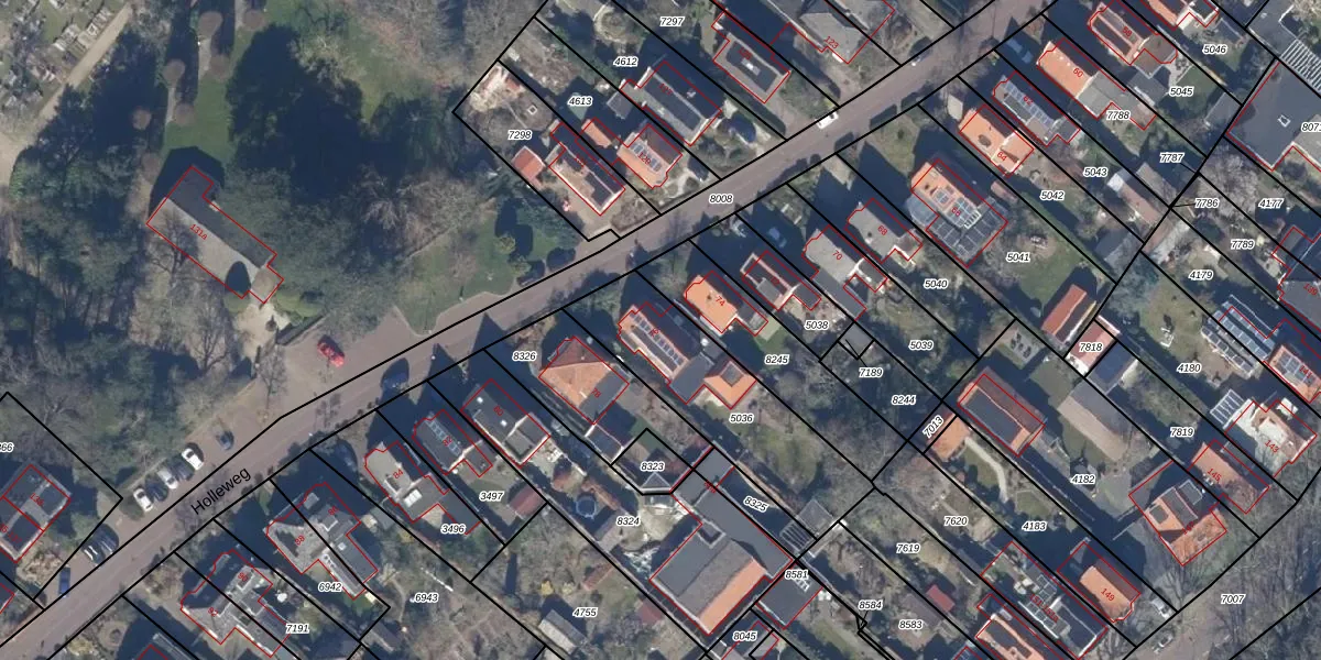 Het perceel waarop Holleweg 76 staat heeft een oppervlakte van 608 m². Dit is een groot perceel. De perceeloppervlakte wordt geregistreerd door het Kadaster. Gedetailleerde informatie over de maten van dit perceel kunt u vinden in het rapport Kadastrale kaart met maatvoering van Holleweg 76.