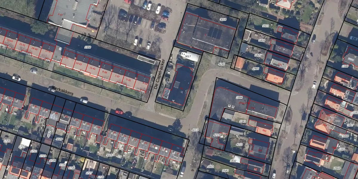 Het perceel waarop Kerkakkers 1-a staat heeft een oppervlakte van 548 m². Dit is een groot perceel. De perceeloppervlakte wordt geregistreerd door het Kadaster. Gedetailleerde informatie over de maten van dit perceel kunt u vinden in het rapport Kadastrale kaart met maatvoering van Kerkakkers 1-a.