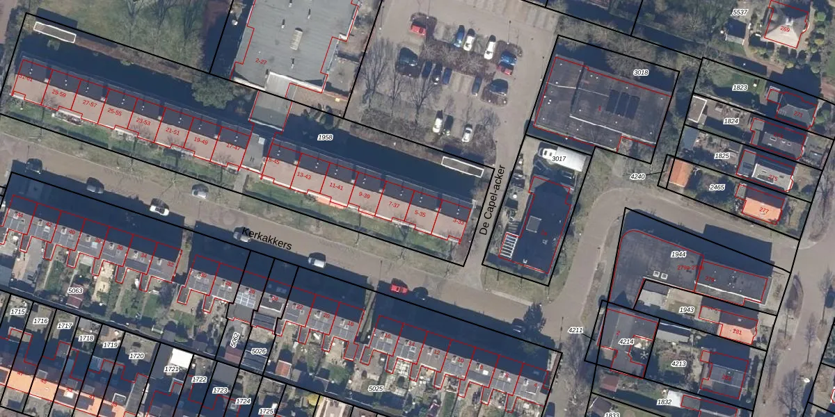 Het perceel waarop Kerkakkers 35 staat heeft een oppervlakte van 2956 m². Dit is een zeer groot perceel. De perceeloppervlakte wordt geregistreerd door het Kadaster. Gedetailleerde informatie over de maten van dit perceel kunt u vinden in het rapport Kadastrale kaart met maatvoering van Kerkakkers 35.