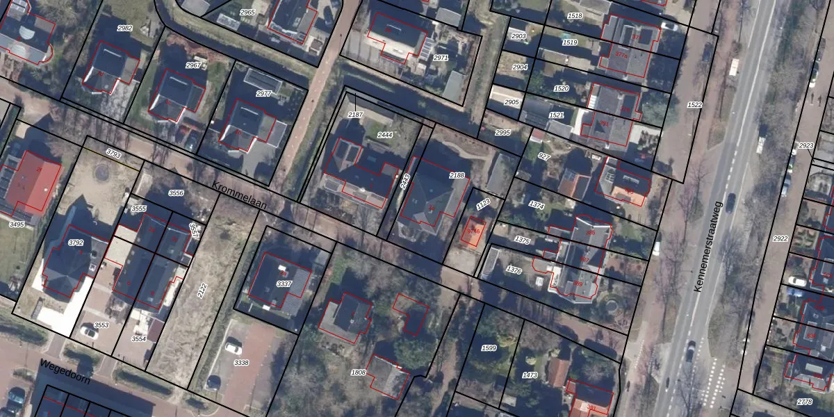 Het perceel waarop Krommelaan 1-a staat heeft een oppervlakte van 527 m². Dit is een groot perceel. De perceeloppervlakte wordt geregistreerd door het Kadaster. Gedetailleerde informatie over de maten van dit perceel kunt u vinden in het rapport Kadastrale kaart met maatvoering van Krommelaan 1-a.
