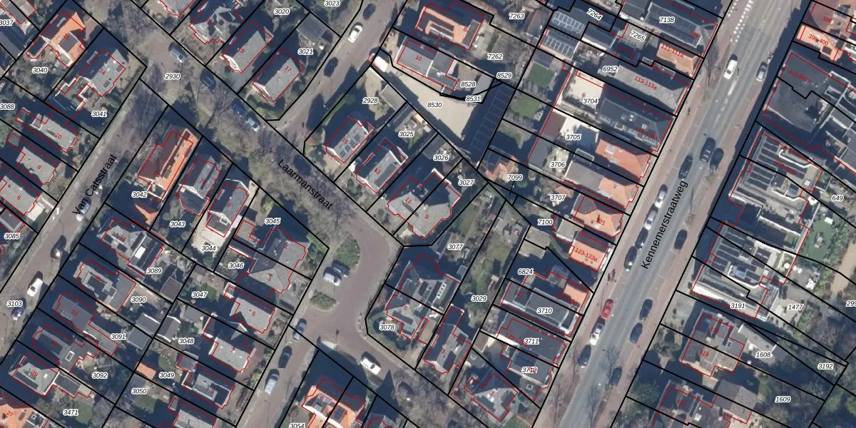 Laarmanstraat 9 is gelegen op kadastraal perceel HLO00A3027. Deze kadastrale aanduiding is uniek en wordt gebruikt door het Kadaster om eigendomsrechten en andere zakelijke rechten vast te leggen. Het perceel maakt onderdeel uit van de kadastrale gemeente Heiloo.