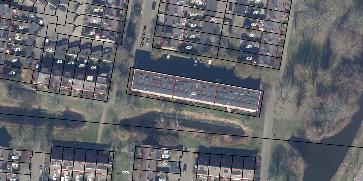 Het perceel waarop Mariënstein 133 staat heeft een oppervlakte van 1104 m². Dit is een zeer groot perceel. De perceeloppervlakte wordt geregistreerd door het Kadaster. Gedetailleerde informatie over de maten van dit perceel kunt u vinden in het rapport Kadastrale kaart met maatvoering van Mariënstein 133.