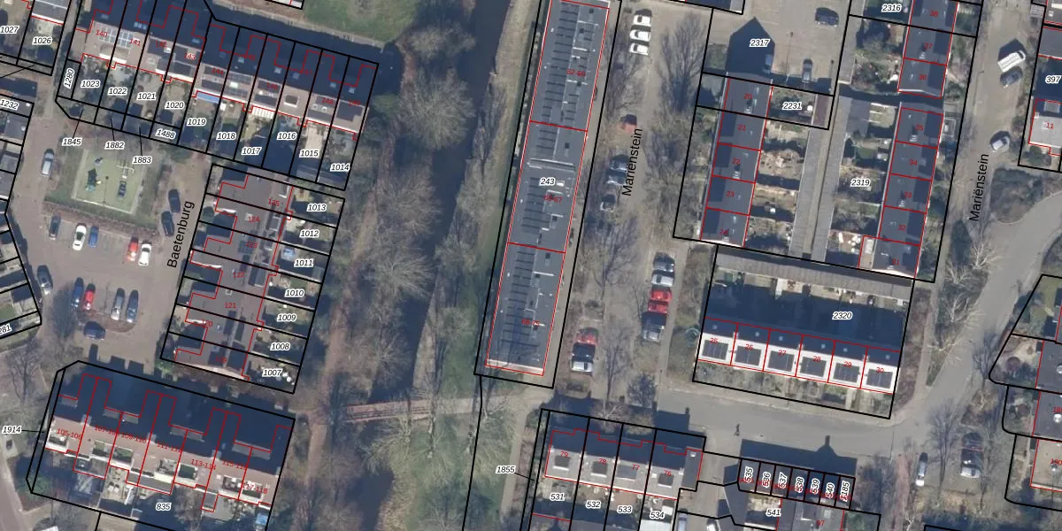 Het perceel waarop Mariënstein 72 staat heeft een oppervlakte van 1105 m². Dit is een zeer groot perceel. De perceeloppervlakte wordt geregistreerd door het Kadaster. Gedetailleerde informatie over de maten van dit perceel kunt u vinden in het rapport Kadastrale kaart met maatvoering van Mariënstein 72.