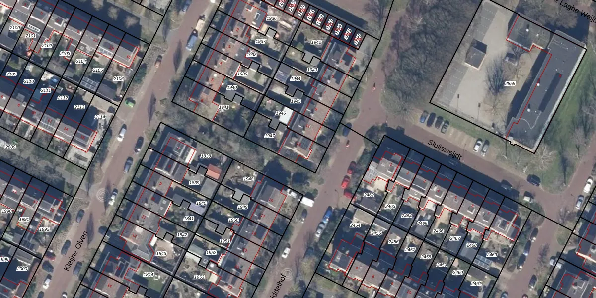 Het perceel waarop Middelhof 13 staat heeft een oppervlakte van 250 m². Dit is een middelgroot perceel. De perceeloppervlakte wordt geregistreerd door het Kadaster. Gedetailleerde informatie over de maten van dit perceel kunt u vinden in het rapport Kadastrale kaart met maatvoering van Middelhof 13.