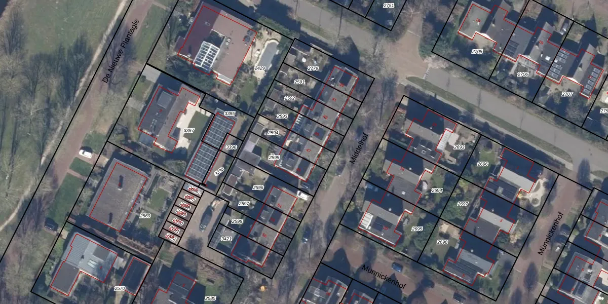 Het perceel waarop Middelhof 47 staat heeft een oppervlakte van 182 m². Dit is een middelgroot perceel. De perceeloppervlakte wordt geregistreerd door het Kadaster. Gedetailleerde informatie over de maten van dit perceel kunt u vinden in het rapport Kadastrale kaart met maatvoering van Middelhof 47.