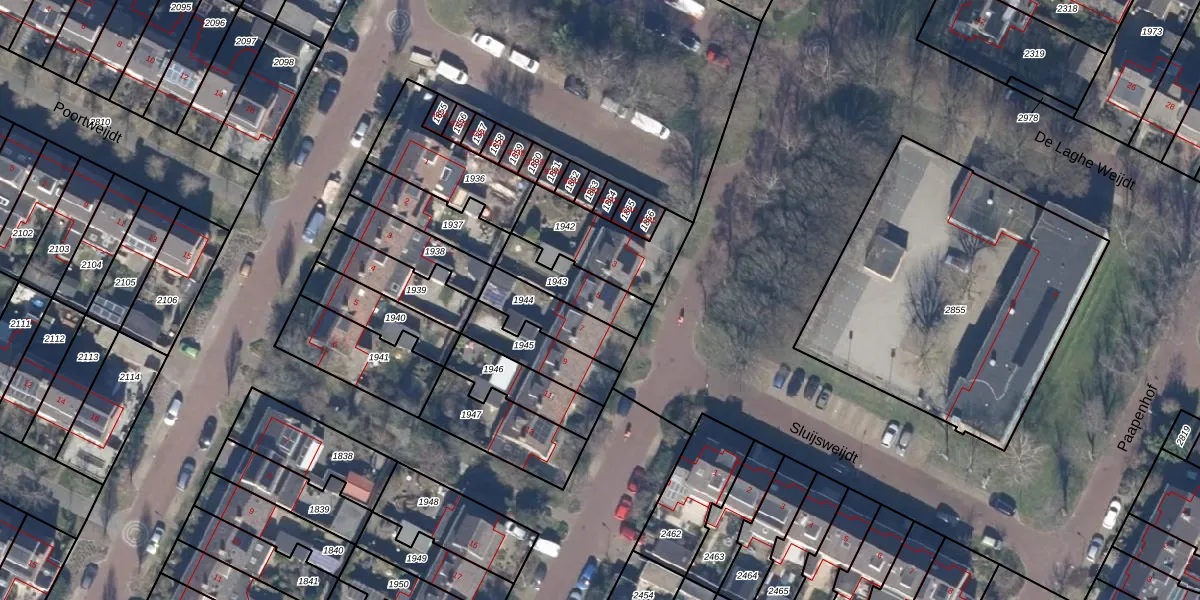 Gebruik de zoekbalk of klik op een perceel voor informatie over de adressen binnen dit perceel.