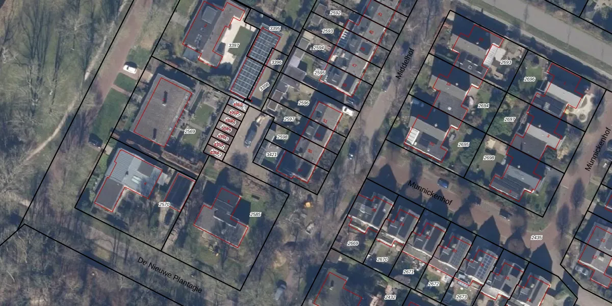 Het perceel waarop Middelhof 55 staat heeft een oppervlakte van 152 m². Dit is een middelgroot perceel. De perceeloppervlakte wordt geregistreerd door het Kadaster. Gedetailleerde informatie over de maten van dit perceel kunt u vinden in het rapport Kadastrale kaart met maatvoering van Middelhof 55.