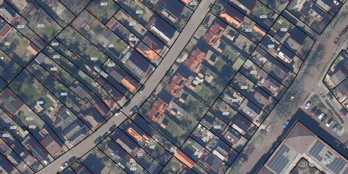 Het adres ligt op het perceel HLO00-B-1270, dat zich in de kadastrale gemeente Heiloo bevindt. De oppervlakte van het perceel is 2390 m². Dat is groter dan gemiddeld in Heiloo, waar de gemiddelde perceeloppervlakte op 1545,7 m² ligt. De grootste perceeloppervlakte in de kadastrale gemeente is 25,8 ha. De kleinste oppervlakte bedraagt 0 m². Op het perceel zijn 8 adressen aanwezig. In de Basisregistratie Kadaster (BRK) werden de grenzen van het perceel geregistreerd op 26-08-2003.
