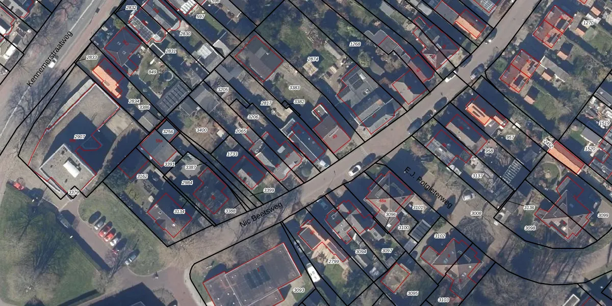 Het perceel waarop Nic Beetsweg 51 staat heeft een oppervlakte van 357 m². Dit is een groot perceel. De perceeloppervlakte wordt geregistreerd door het Kadaster. Gedetailleerde informatie over de maten van dit perceel kunt u vinden in het rapport Kadastrale kaart met maatvoering van Nic Beetsweg 51.