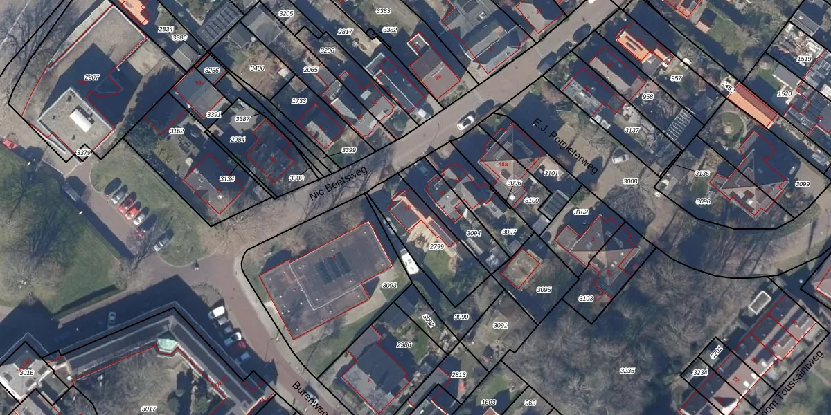 Het perceel waarop Nic Beetsweg 54 staat heeft een oppervlakte van 376 m². Dit is een groot perceel. De perceeloppervlakte wordt geregistreerd door het Kadaster. Gedetailleerde informatie over de maten van dit perceel kunt u vinden in het rapport Kadastrale kaart met maatvoering van Nic Beetsweg 54.