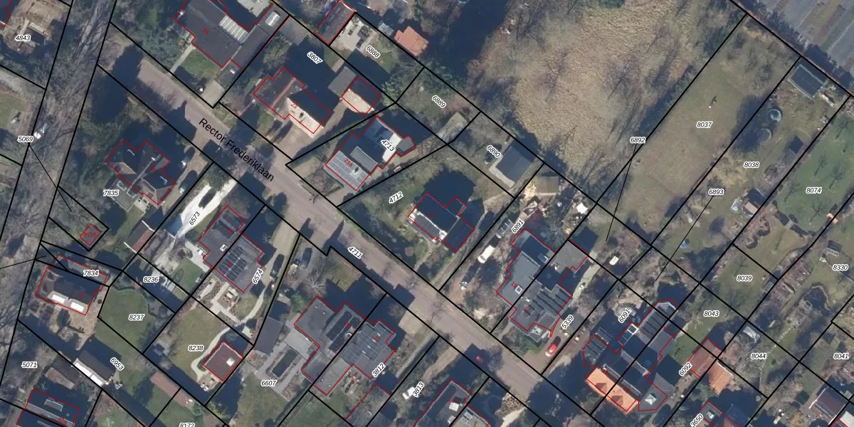 Het perceel waarop Rector Frederiklaan 21 staat heeft een oppervlakte van 715 m². Dit is een groot perceel. De perceeloppervlakte wordt geregistreerd door het Kadaster. Gedetailleerde informatie over de maten van dit perceel kunt u vinden in het rapport Kadastrale kaart met maatvoering van Rector Frederiklaan 21.