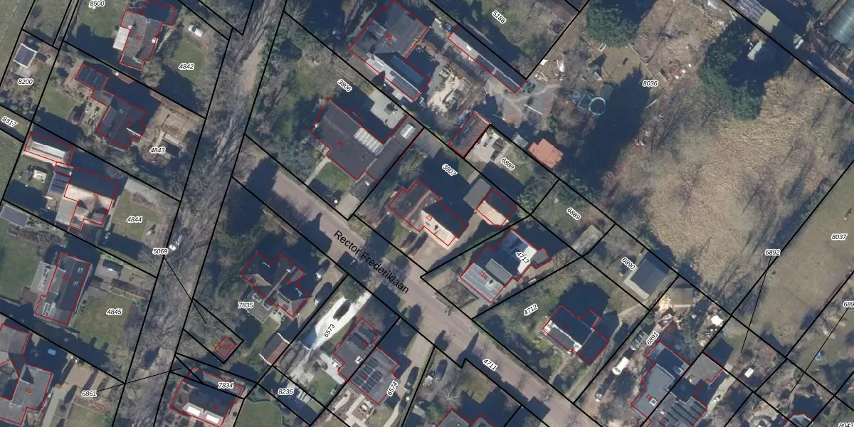 Het perceel waarop Rector Frederiklaan 23 staat heeft een oppervlakte van 710 m². Dit is een groot perceel. De perceeloppervlakte wordt geregistreerd door het Kadaster. Gedetailleerde informatie over de maten van dit perceel kunt u vinden in het rapport Kadastrale kaart met maatvoering van Rector Frederiklaan 23.