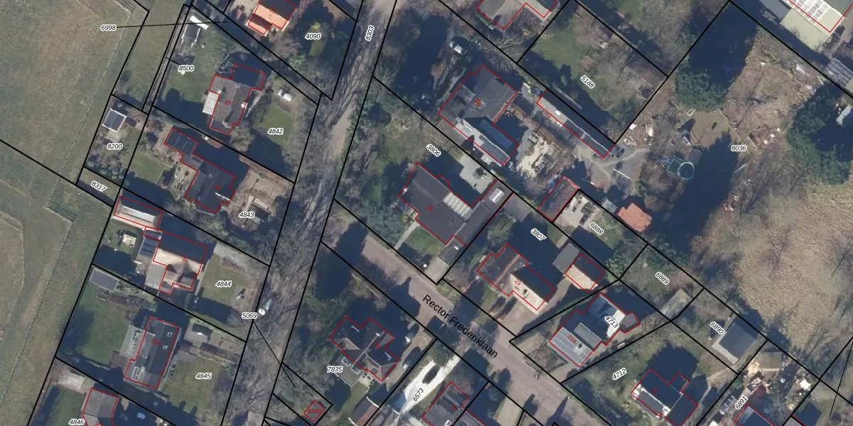 Het perceel waarop Rector Frederiklaan 25 staat heeft een oppervlakte van 1045 m². Dit is een zeer groot perceel. De perceeloppervlakte wordt geregistreerd door het Kadaster. Gedetailleerde informatie over de maten van dit perceel kunt u vinden in het rapport Kadastrale kaart met maatvoering van Rector Frederiklaan 25.