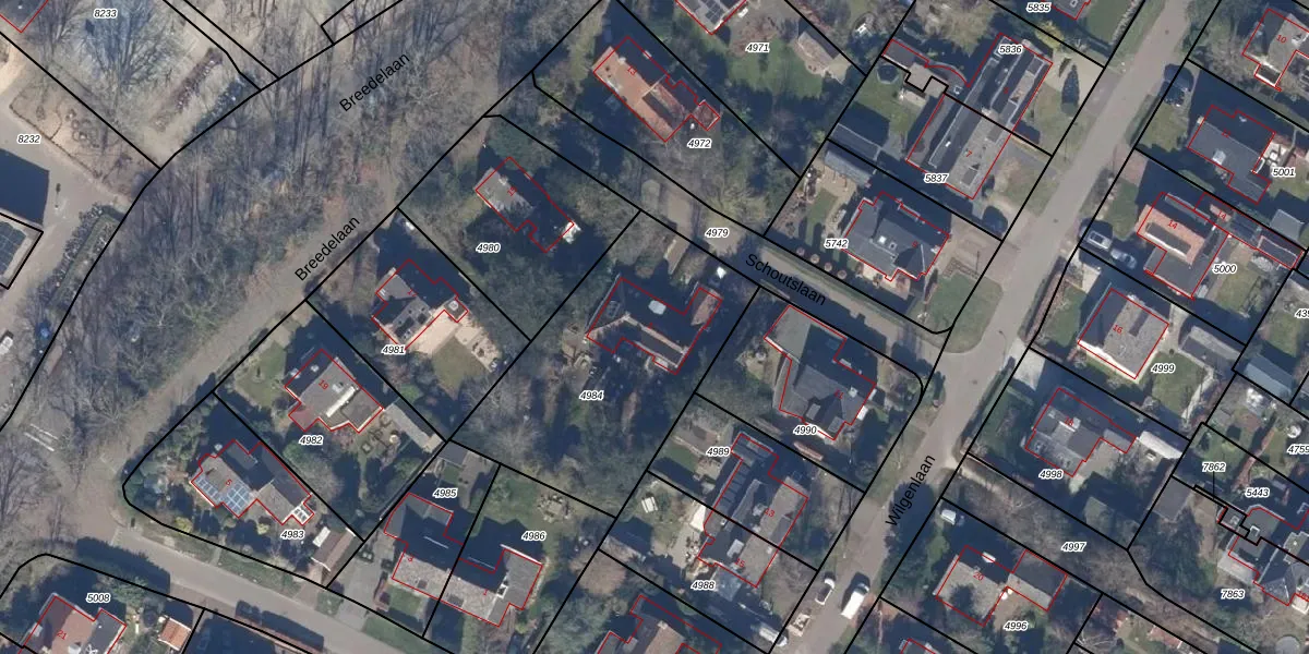 Schoutslaan 1 is gelegen op kadastraal perceel HLO00A4984. Deze kadastrale aanduiding is uniek en wordt gebruikt door het Kadaster om eigendomsrechten en andere zakelijke rechten vast te leggen. Het perceel maakt onderdeel uit van de kadastrale gemeente Heiloo.