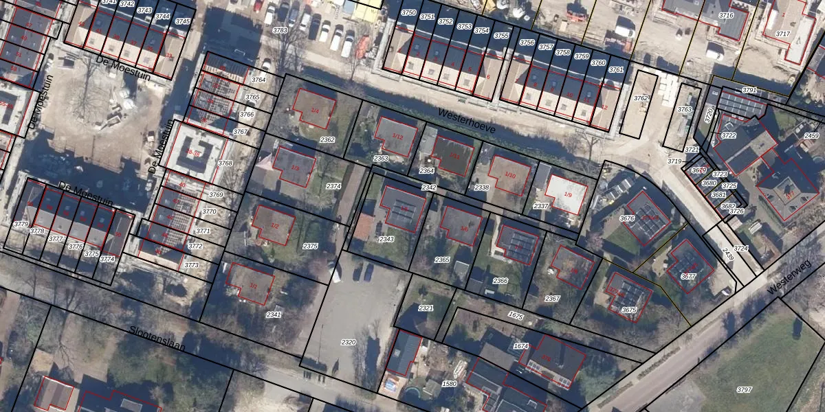 Slootenslaan 1-5 is gelegen op kadastraal perceel HLO00E2343. Deze kadastrale aanduiding is uniek en wordt gebruikt door het Kadaster om eigendomsrechten en andere zakelijke rechten vast te leggen. Het perceel maakt onderdeel uit van de kadastrale gemeente Heiloo.